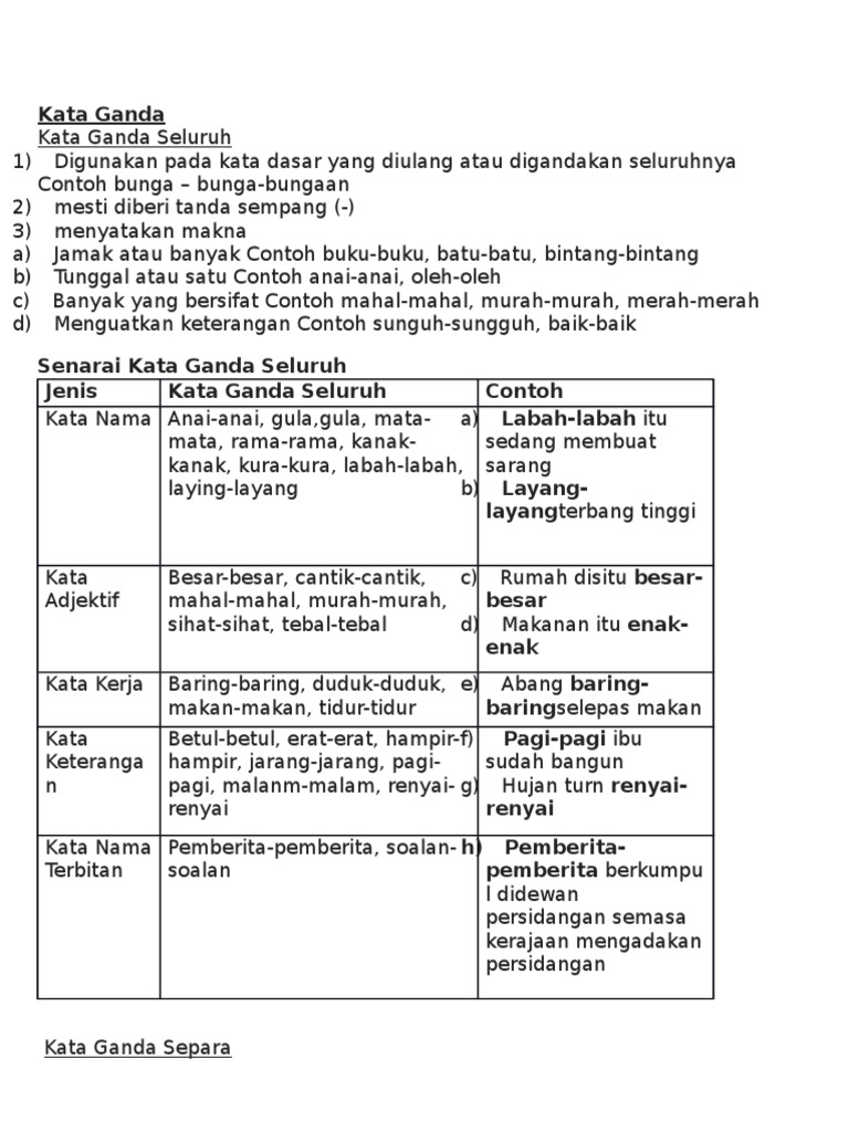 Kata ganti merupakan kata yang dipergunakan sebagai pengganti subyek maupun obyek berupa benda dan orang. Kuiz latihan kata ganda separa. You can do the exercises online or download the worksheet as pdf. 3.bebuluh itu dibelah un tuk dibuat lantai rumah. Beberapa kata serapan juga diambil dari bahasa negara yang sempat menjajah indonesia, contohnya adalah kata serapan dari bahasa belanda, portugis atau jepang.